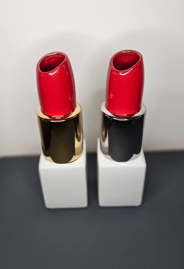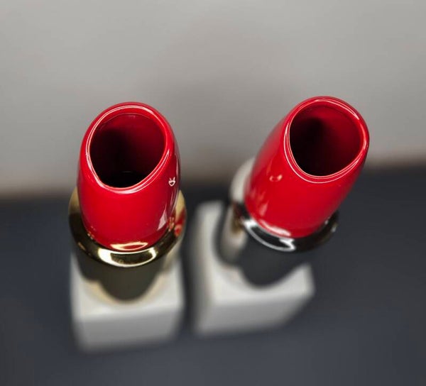 GILDE keramische vaas lippenstift "Milano" wit/rood/goudkleurig en wit/rood/zilverkeurig.