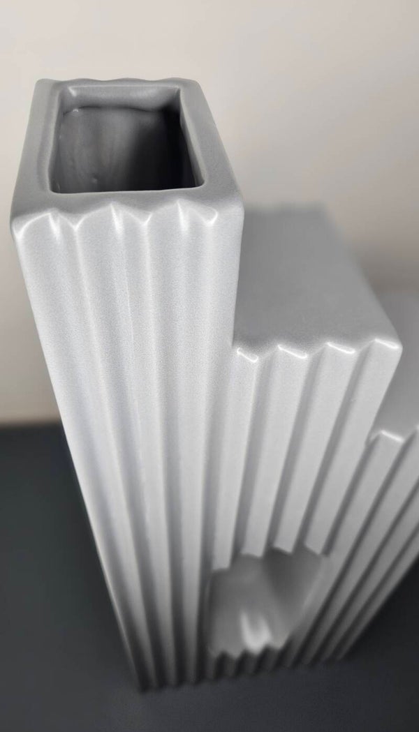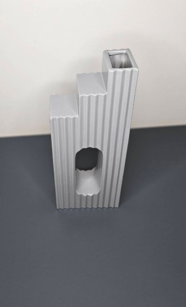 De moderne vaas "Boca" is gemaakt van hoogwaardig grijs keramiek en maakt indruk door zijn eenvoudige elegantie. Met afmetingen van 8x14,5x36 cm biedt hij voldoende ruimte voor verse bloemstukken. Dankzij de waterdichte eigenschappen is hij geschikt voor zowel echte als kunstbloemen. Een stijlvol accessoire dat een vleugje elegantie toevoegt aan elke kamer en perfect in elk huis kan worden geïntegreerd. Een musthave voor iedereen die waarde hecht aan stijlvolle decoratie.