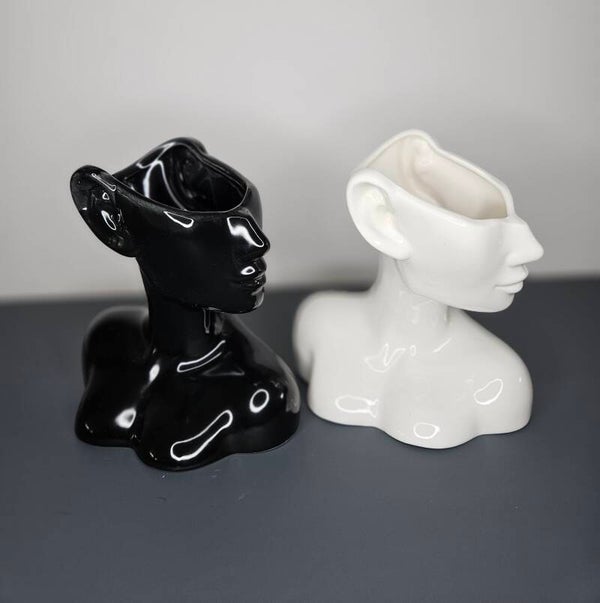 Verrijk je interieur met een vleugje artistieke verfijning met deze prachtige zwarte keramische vaas van "Homexclusive". Geïnspireerd door de menselijke schoonheid. Deze unieke vaas, vakkundig vervaardigd uit hoogwaardig keramiek, is meer dan alleen een decoratief object; het is een kunstwerk dat de verbeelding prikkelt en een gespreksonderwerp creëert waar je ook bent.