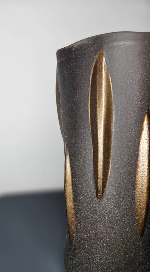 Vaas kamari is uniek, er steken goud/bruine langwerpige punten. Mooi voor op kantoor.