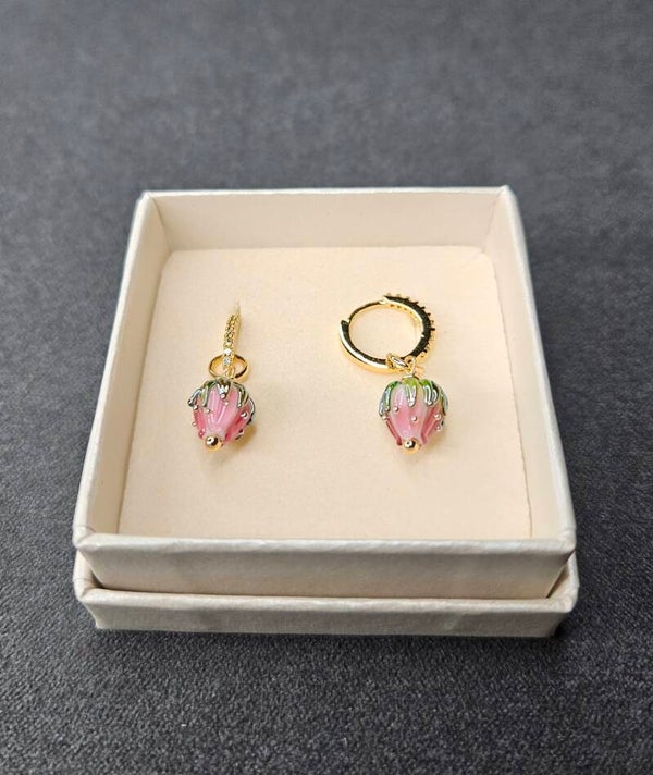Handgemaakt met cz vergulde koperen mini-hoepels en roze gebloemde glaskralen. Glazen kralen worden één voor één met de hand gemaakt door bekwame ambachtslieden in Oekraïne. Verkocht als paar.