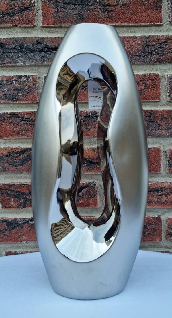 Vaas "ovaal" zilver mat / glanzend, deze vaas kijk je niet weg