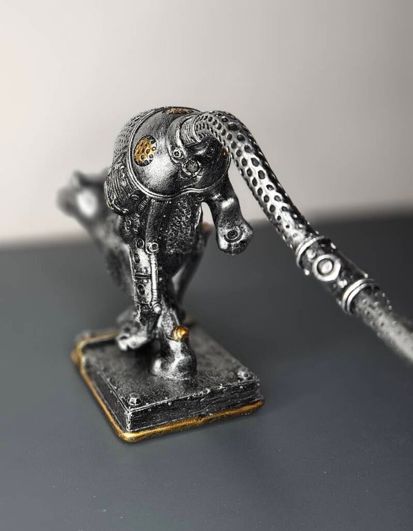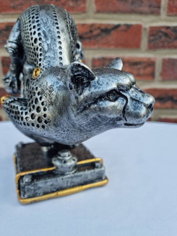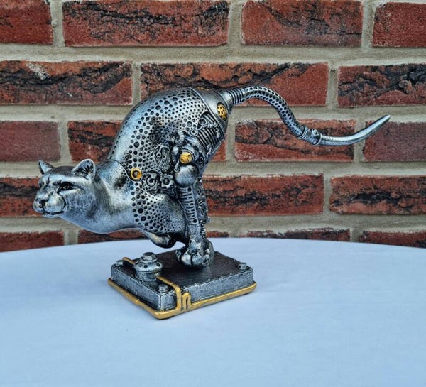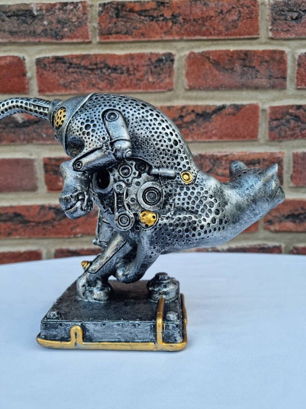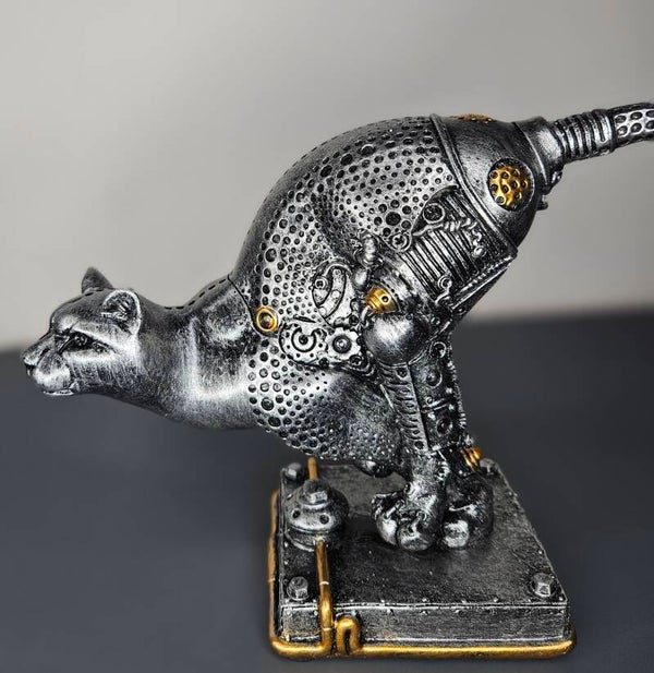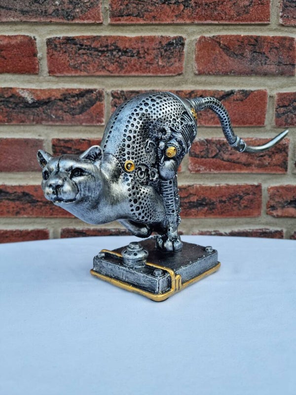 Sculptuur Steampunk "cheetah", antiek zilverkleurig met koperkleurige elementen
